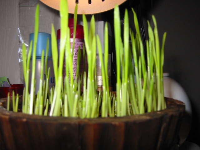 猫草栽培中~ぐんぐんのびてます^^